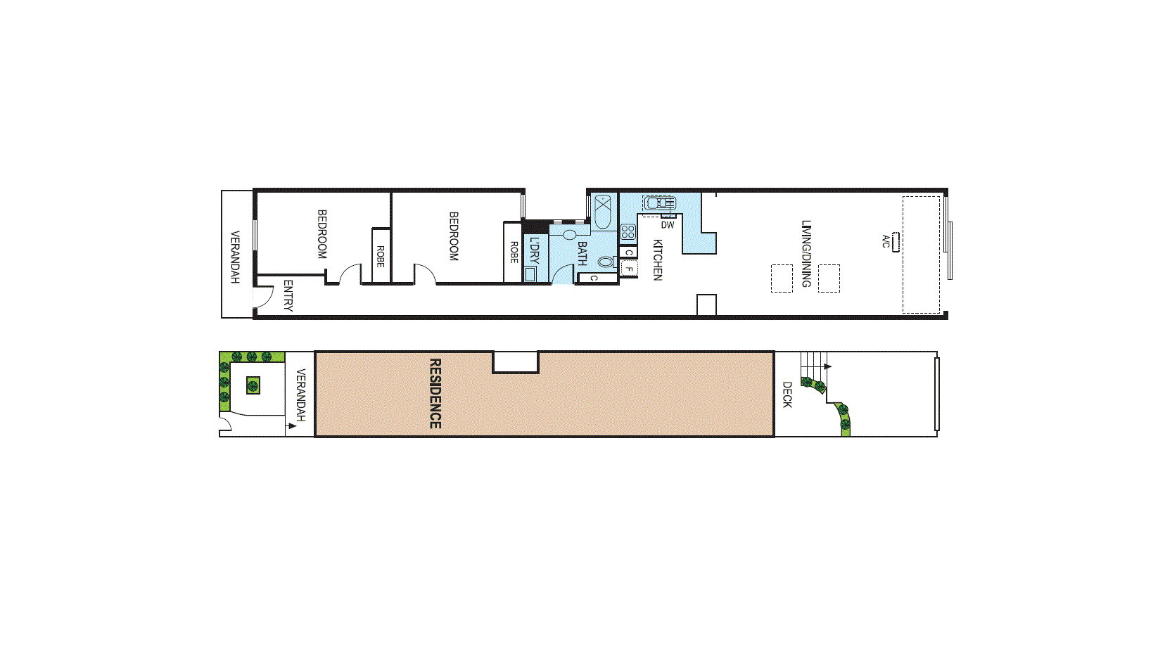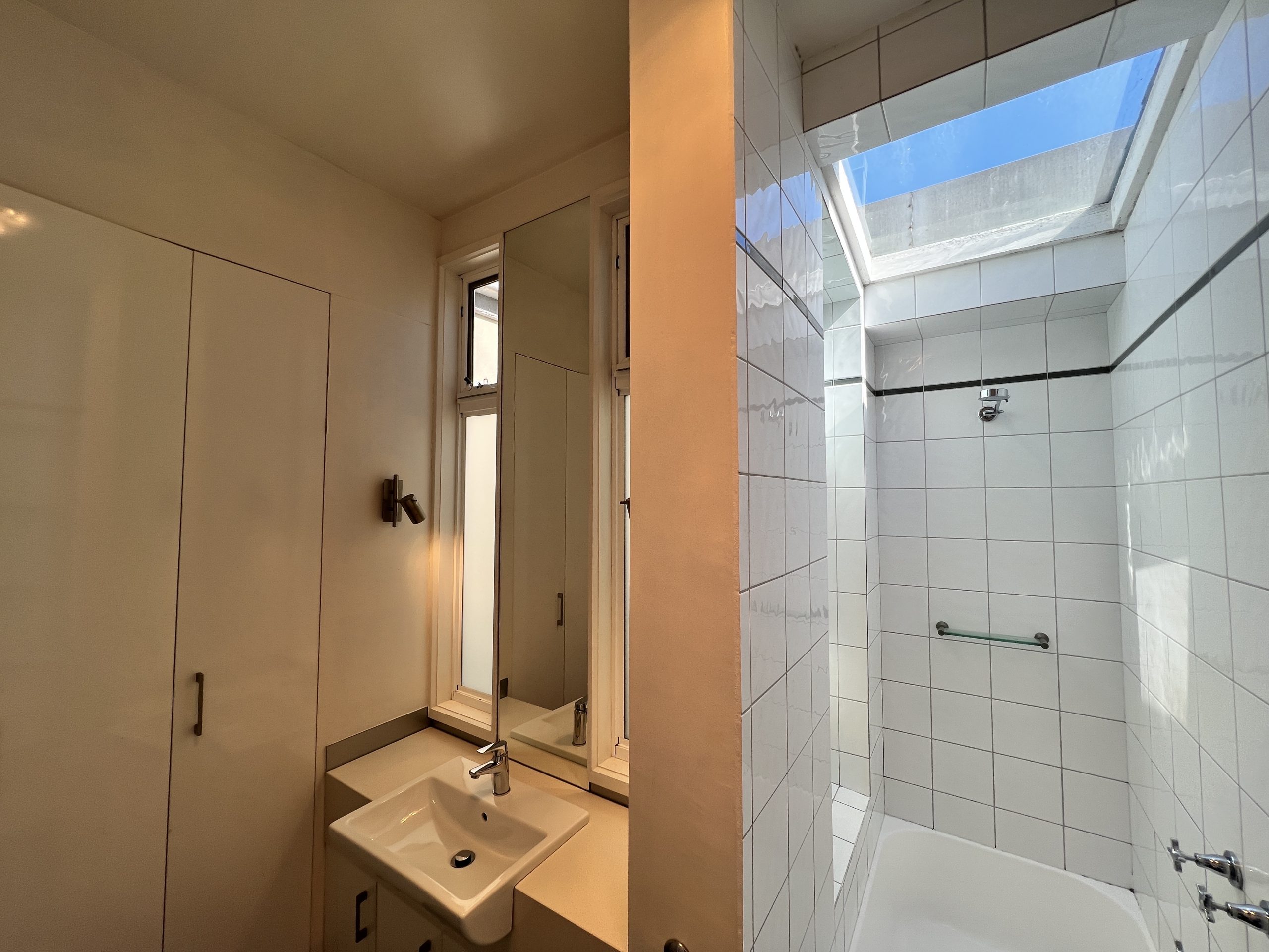 Featuring two spacious double bedrooms with built-in robes, a stylish central bathroom with lush lightwell outlook, and cleverly integrated laundry facilities within the original structure — every element combines character with practicality.