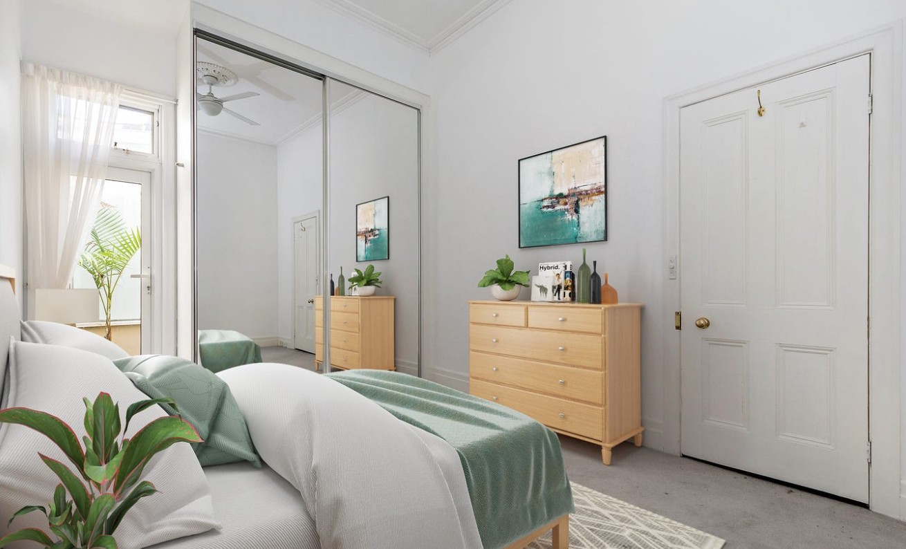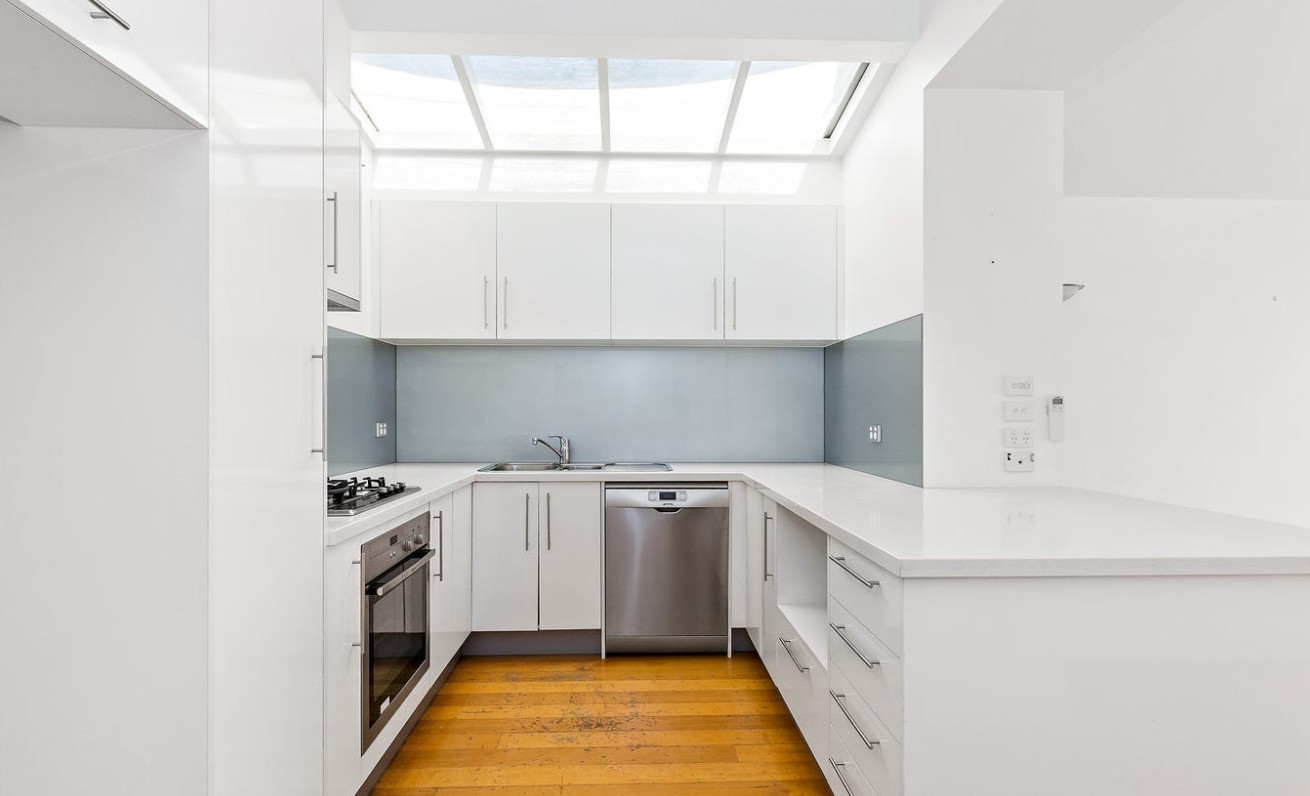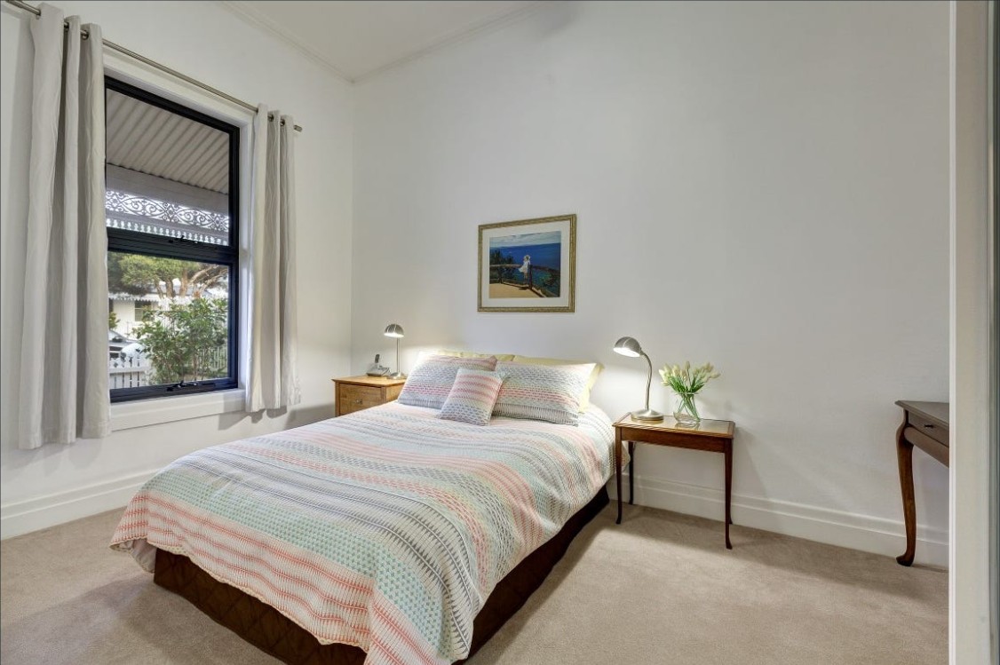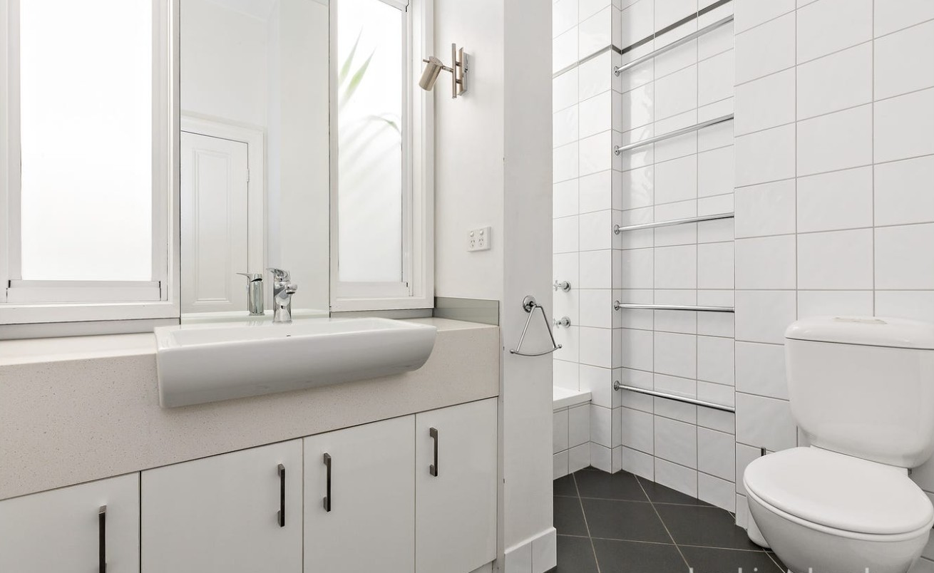 Featuring two spacious double bedrooms with built-in robes, a stylish central bathroom with lush lightwell outlook, and cleverly integrated laundry facilities within the original structure — every element combines character with practicality.