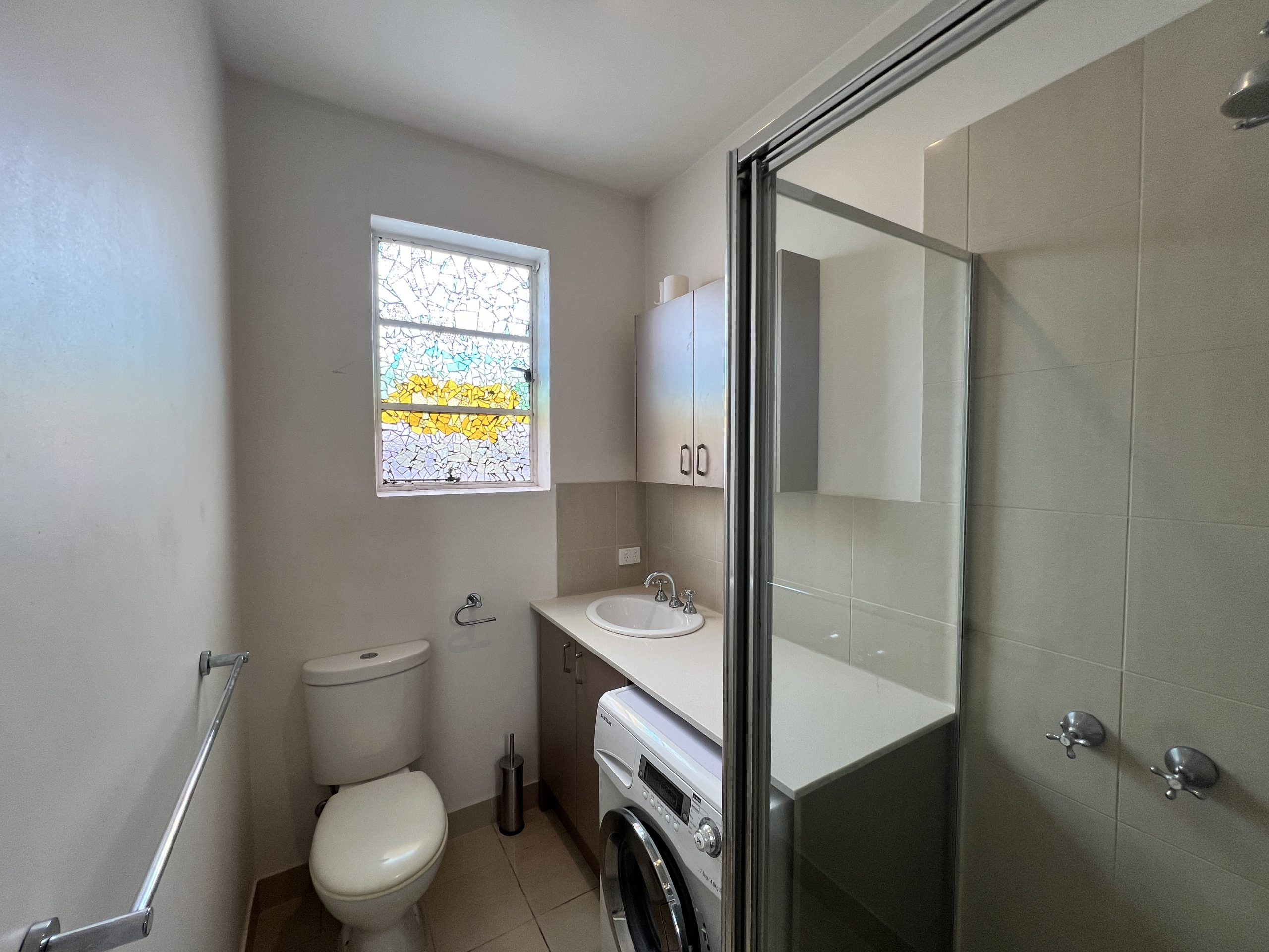 The bathroom is sleek with its tiled surfaces and fittings. Conveniently located in a prime position close to the CBD and within walking distance of West Richmond Station, eclectic Bridge Road shops, Fitzroy Gardens or a game of footy at the āGā.