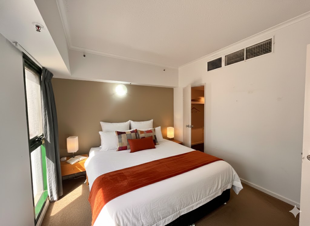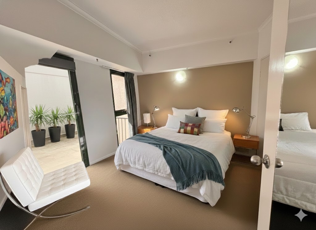 Positioned on a north-west corner, the apartment enjoys excellent natural light, a private balcony, and an exceptionally large living and dining area—almost double the size of many modern apartments. The flexible layout includes a practical galley-style kitchenette and two generous bedrooms with robes, all complemented by higher ceilings and proportions rarely seen today.