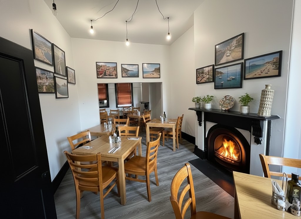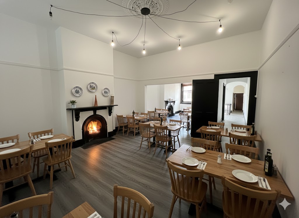 Two intimate rear dining rooms, a basic commercial kitchen, and WC facilities