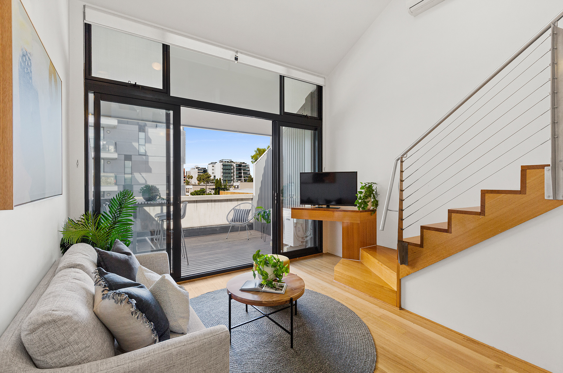 True to the concept of a ‘New York loft’ this upper floor abode is far from ‘the mundane’ in stark contrast to most contemporaries boasting a unique, spacious and flexible layout built into the heritage roofline of the iconic old Lyric Theatre. Whilst there is little doubt the architecture & build quality should impress cosmopolitan Sydney Road can now lay claim to being a ‘lifestyle mecca’ with its diverse offering of gastronomic delights, specialty shopping, on trend bars and a distinctive vibe all its own… Purchasing here is so much more than just a great apartment. Over 2 levels plus additional upper loft storage (accessed via retractable ladder) this exquisite use of space delivers a sizeable bedroom with built in robes, generously proportioned open plan living/dining with bespoke built in cabinetry, lush timber floorboards and double door access to a gorgeous semi-undercover alfresco balcony. Add a smartly presented kitchen with stainless steel appliances, study/home office (infinitely useful in these days of flexible workplaces), laundry, upper/lower floor toilets and secure remote accessed car parking on title and you have a truly special offering indeed. Note: Solar Panels recently installed at the Lyric Theatre Apartments for sustainability & cost saving.