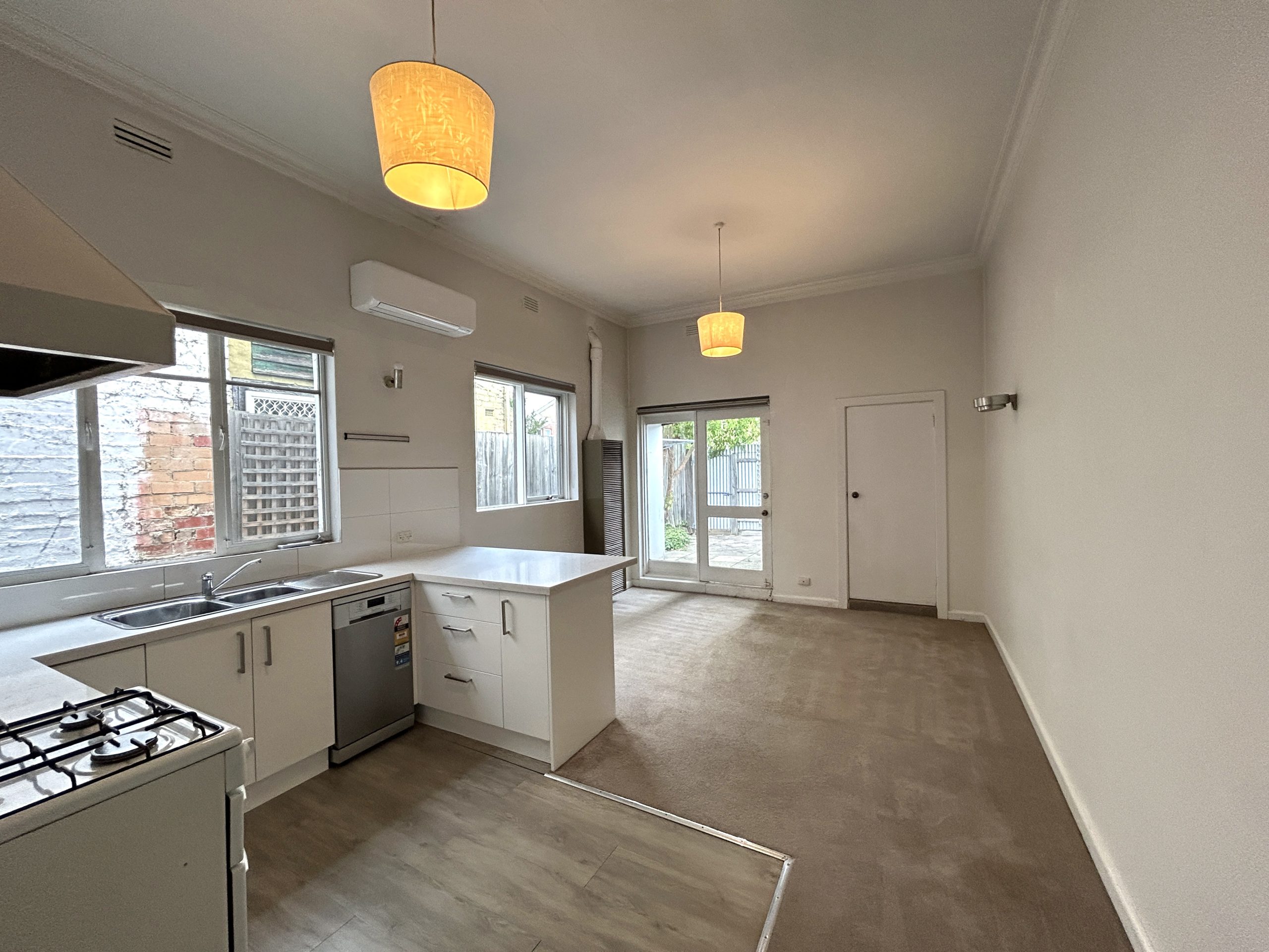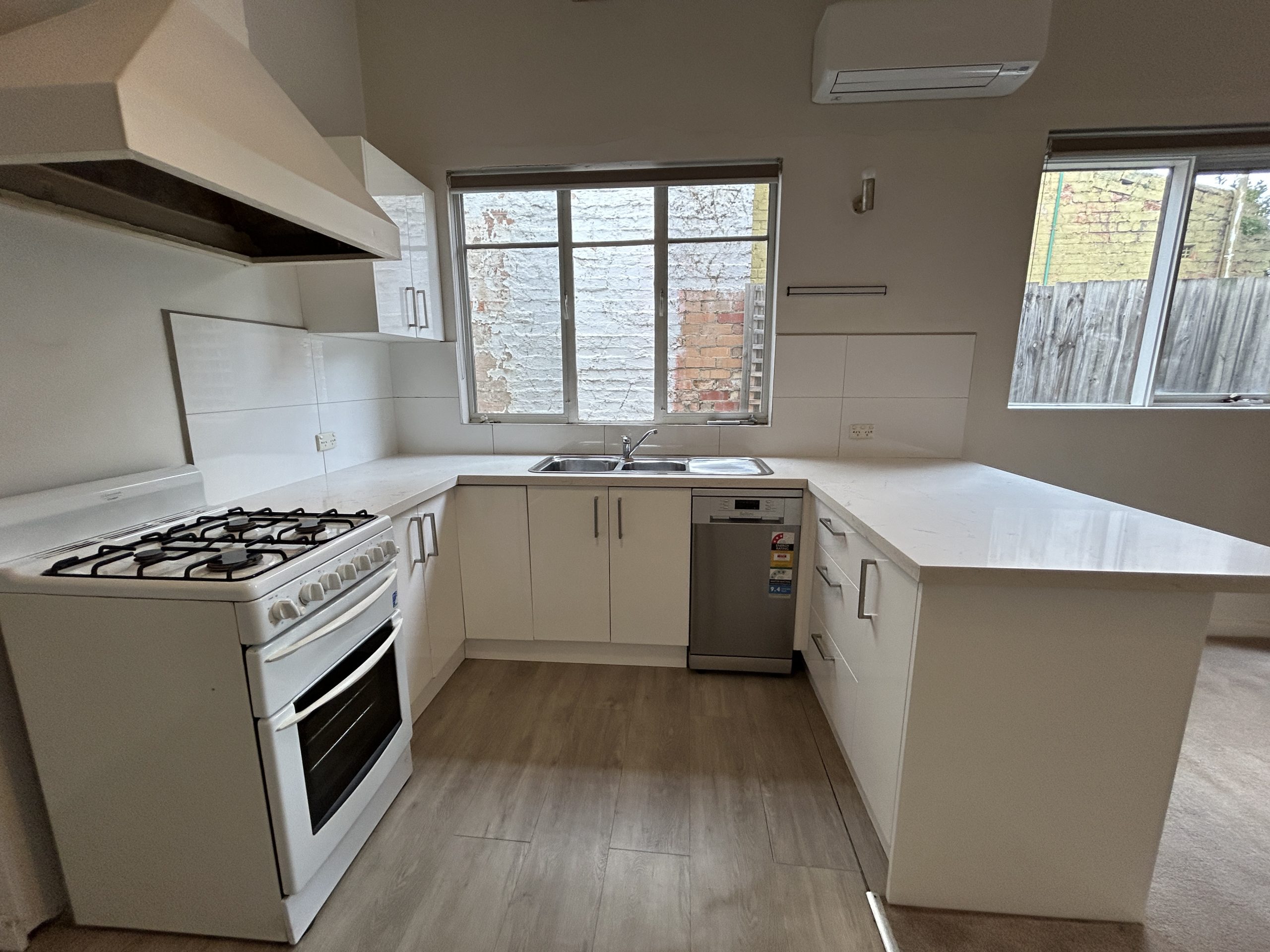 Step inside this two-bedroom Victorian terrace, full of charm and character throughout. The front Bedroom features an elegant ornamental fireplace, adding a touch of period style, while a modern kitchen with gas appliances and a breakfast bench flows seamlessly into a cosy lounge complete with split system heating and cooling.