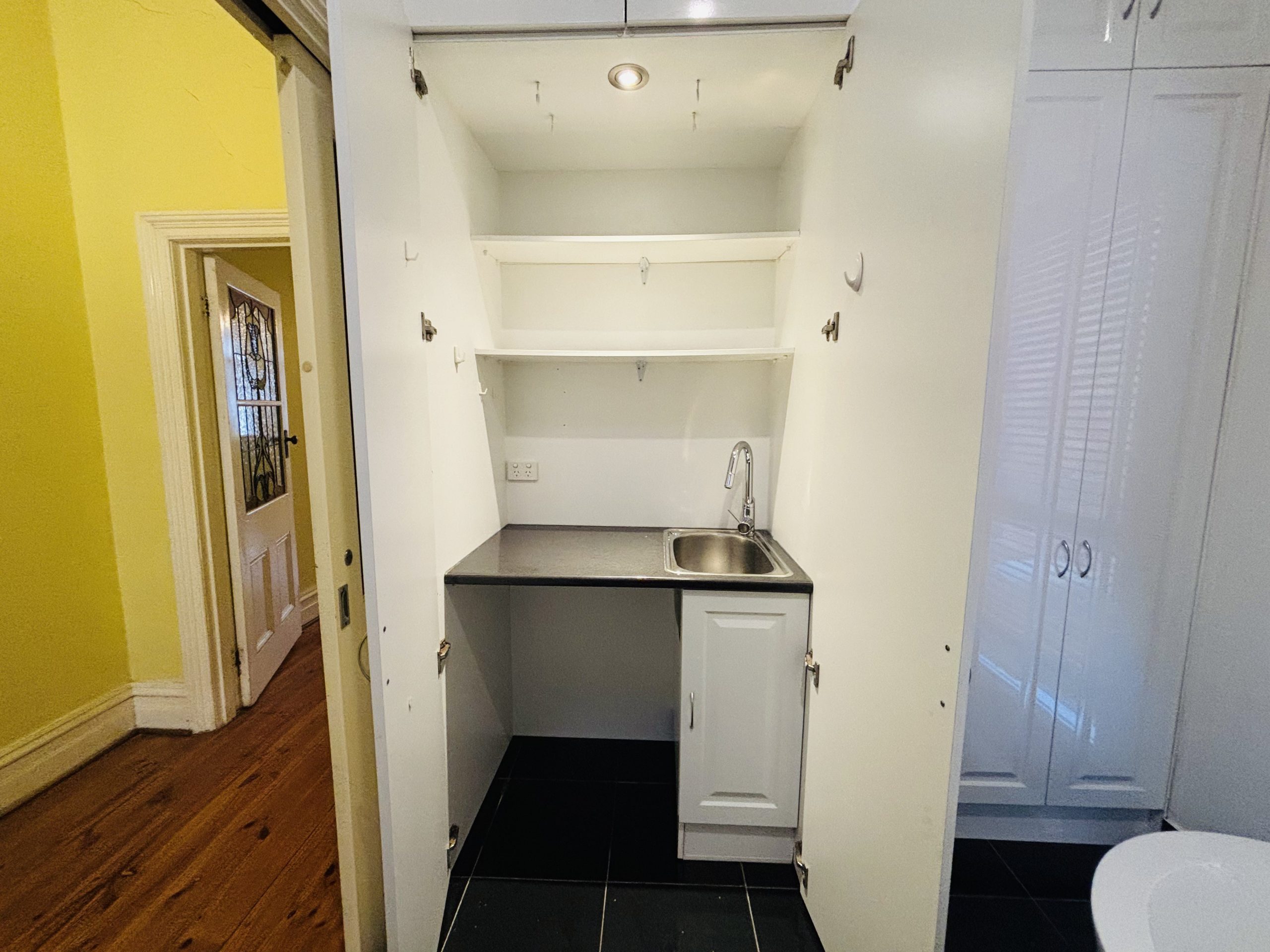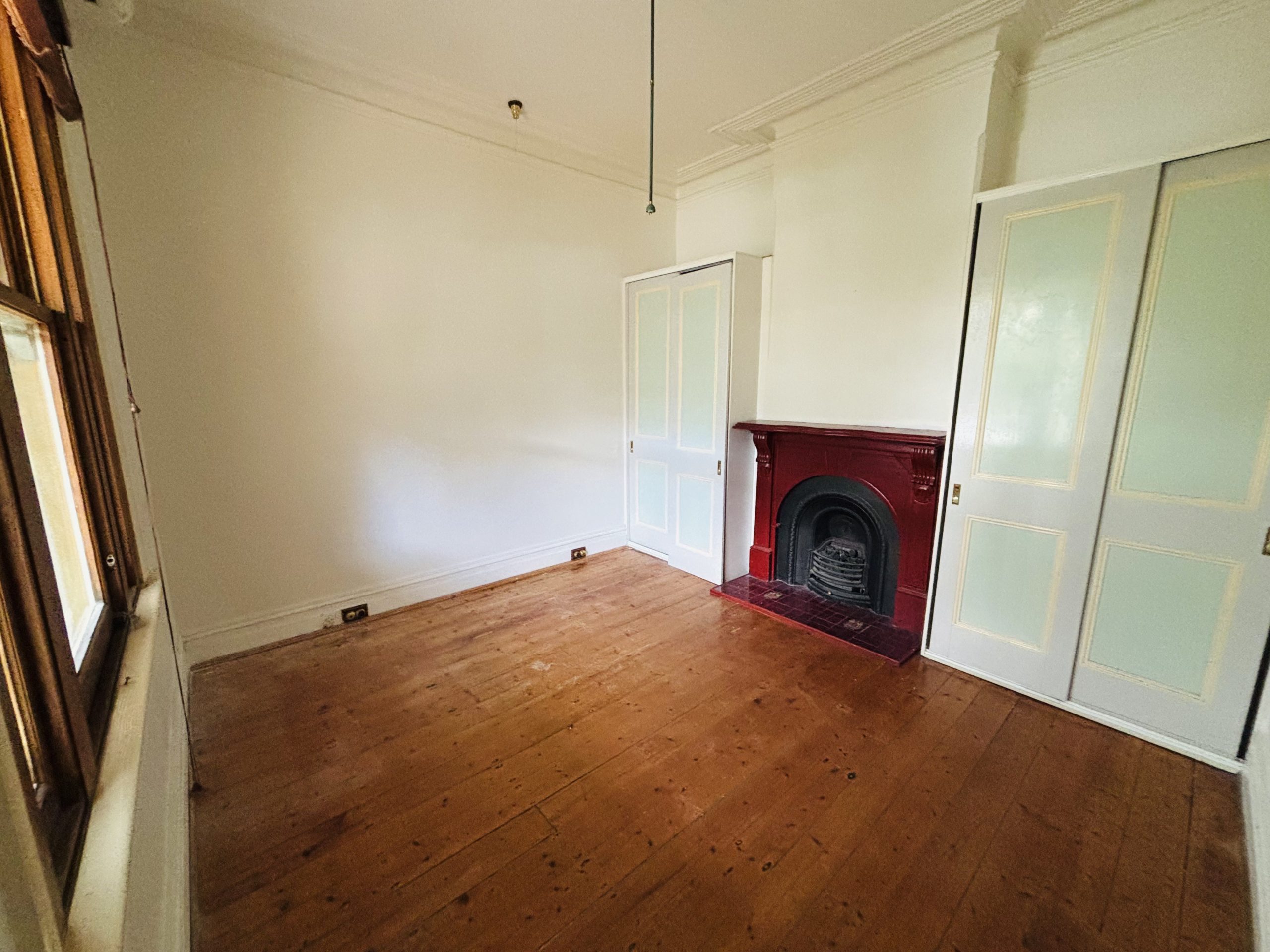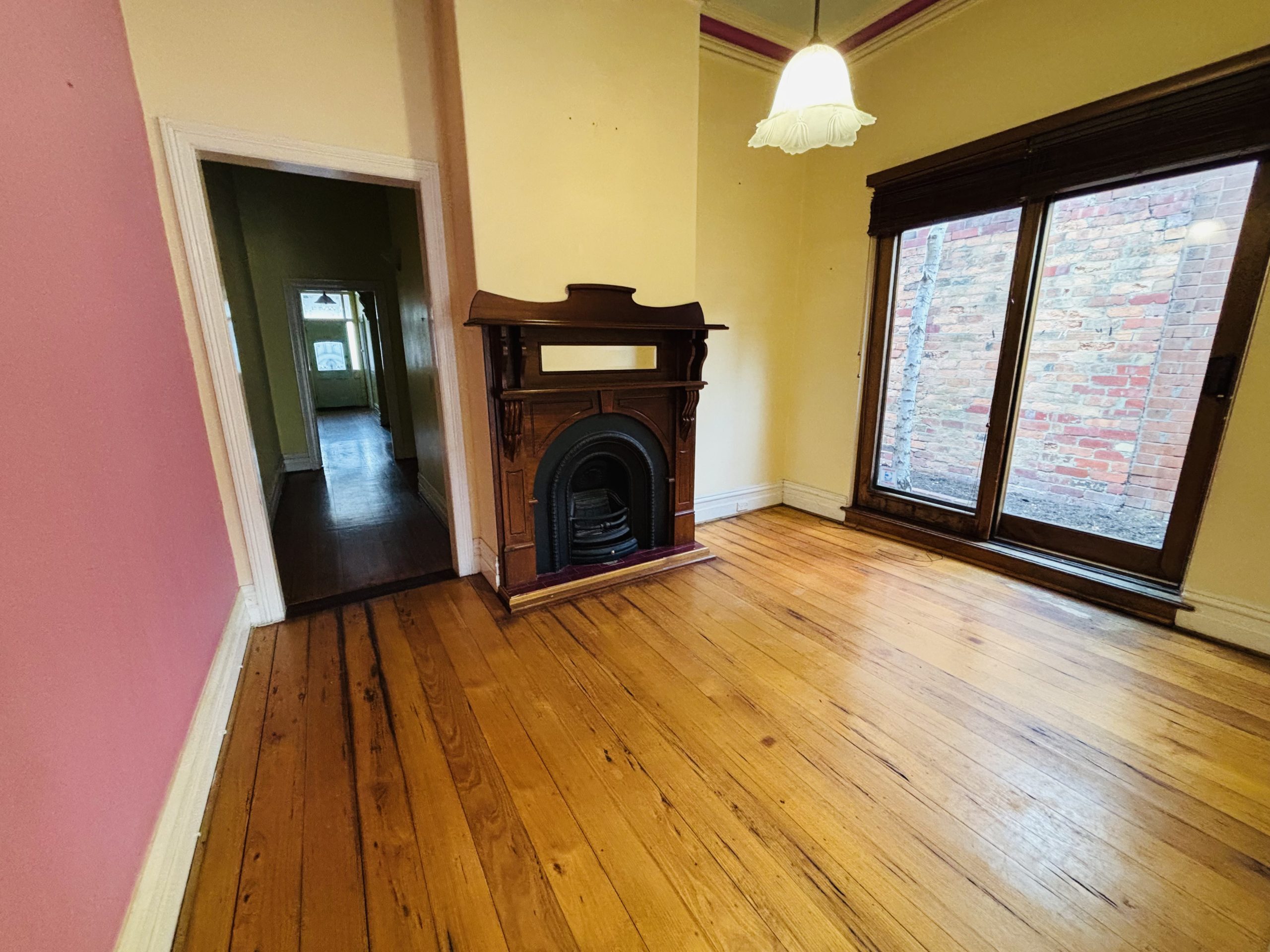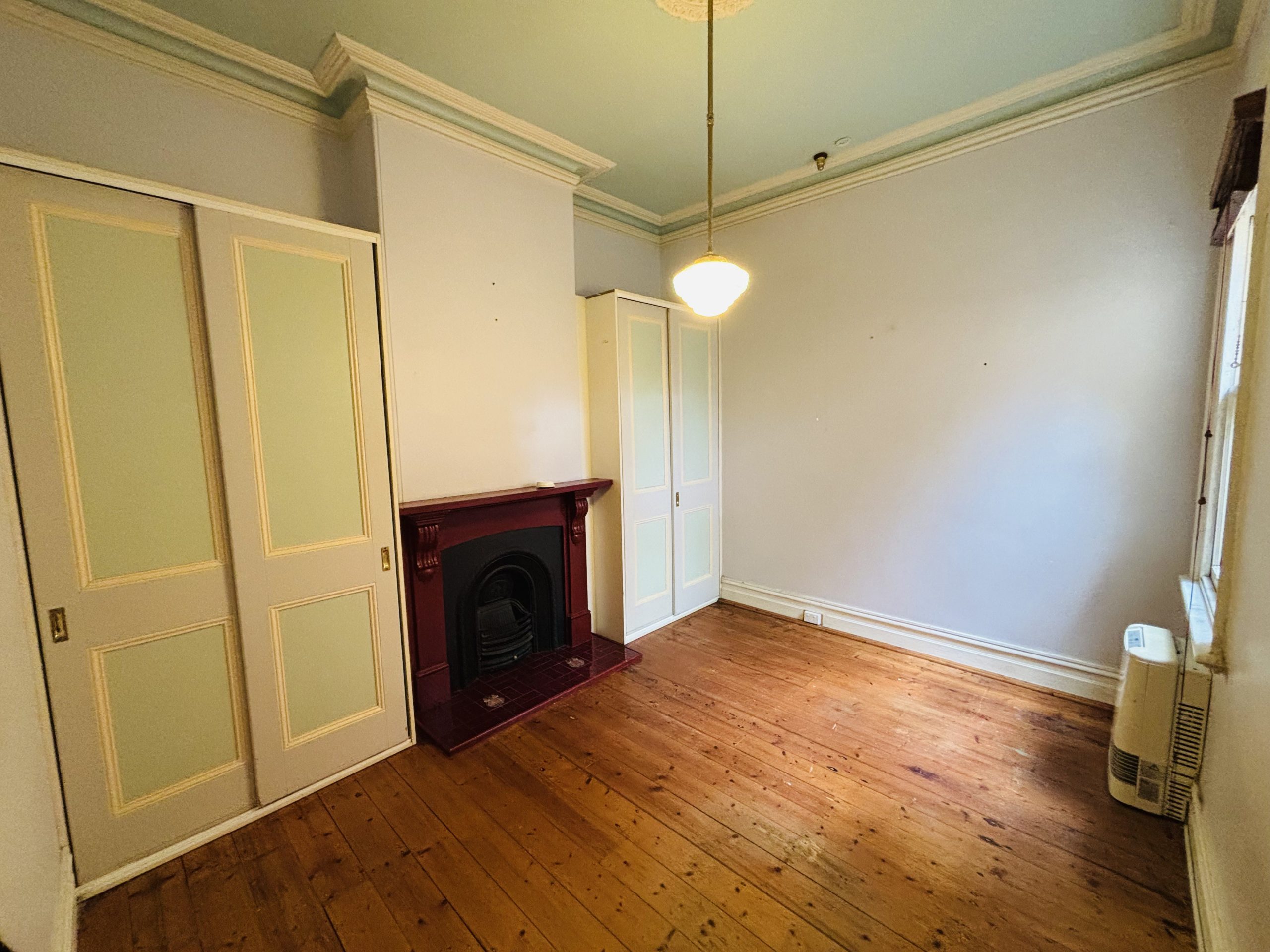Inside, you’ll discover two spacious bedrooms, each with built-in robes and ornamental fireplaces, alongside an additional living room with its own decorative fireplace — perfect as a formal sitting room or elegant dining space. The home’s décor, with its rich palette of multiple period-inspired shades, evokes the warmth and character of its era.