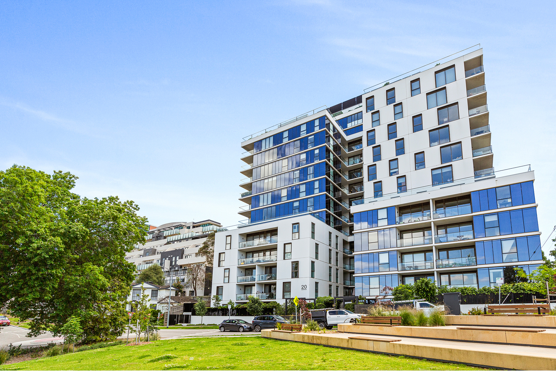 Located within perhaps the area’s most renowned and keenly sought building this 2 bedroom (plus study) apartment would benefit from cosmetic rejuvenation post its life as a rental investment. For the owner occupier though this perhaps comes as a blessing as you can create the space, look and style that suits you at a price point already compensating for such works to be undertaken… A great opportunity indeed. ‘Magnolia’ is beautifully maintained with Building Manager on site enjoying full security entry with video intercom, 2 spectacular communal garden terraces, opulent common areas and ample visitor car parking. The apartment itself offers 2 double bedrooms with built in robes, separate study with built in desk & plenty of storage, open plan living/dining, smart kitchen, sizeable bathroom, European laundry, secure garaged car space and storage cage. All this in a quiet residential street opposite parkland and only a short stroll to the world class living & entertainment precinct of Westfield Doncaster plus easy access to the CBD via the Eastern Freeway or the nearby Park & Ride public transport hub… An enviable lifestyle awaits!